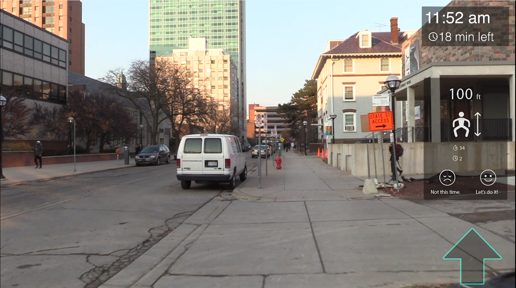 Our ambition to scan the environment and provide contextual suggestions and new exercise opportunities weren’t achieved in our prototype.
