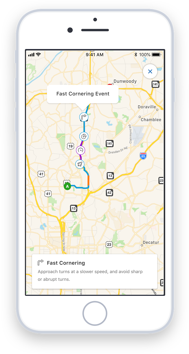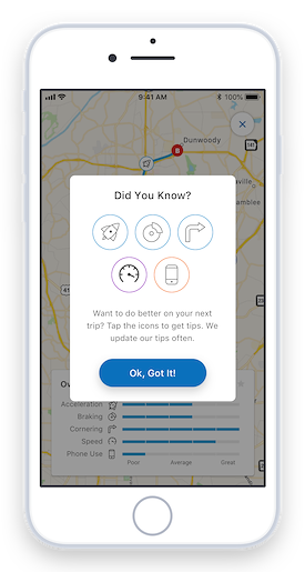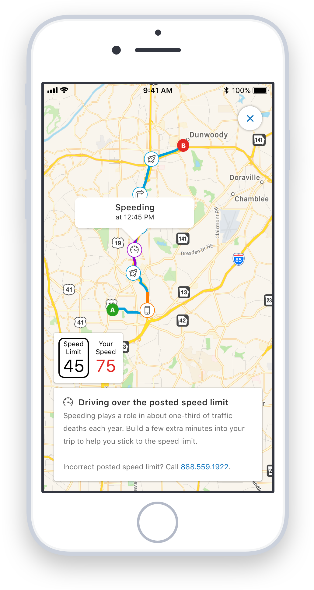 One feature the product team was looking to do was to highlighting specific moments when customers were speeding in order to make them better drivers. My goal was to create and design the look & feel of it.